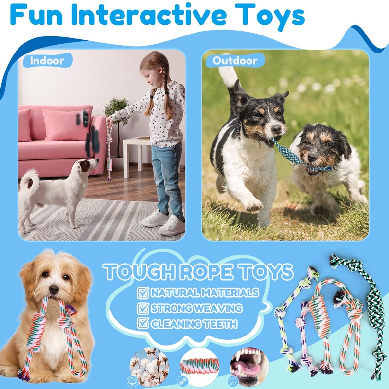 - Super Value 16 Pack Puppy Teething Toys: There are 16 pack of 4 tough rope toys, 4 natural rubber toys, 3 squeaky plush toys, 4 dog bag rolls and 1 holder. This versatile interactive dog teething toys set, more kinds of dog toys can meet the needs of dogs for teething, self-play, training and interactive toys games. Make chewing and playing more enjoyable for your dog