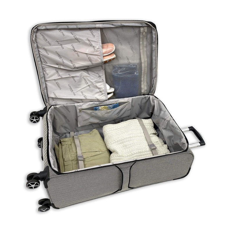 - 8-low profile 360 degree multi-directional wheels. Full color contrasting London Fog signature lining.