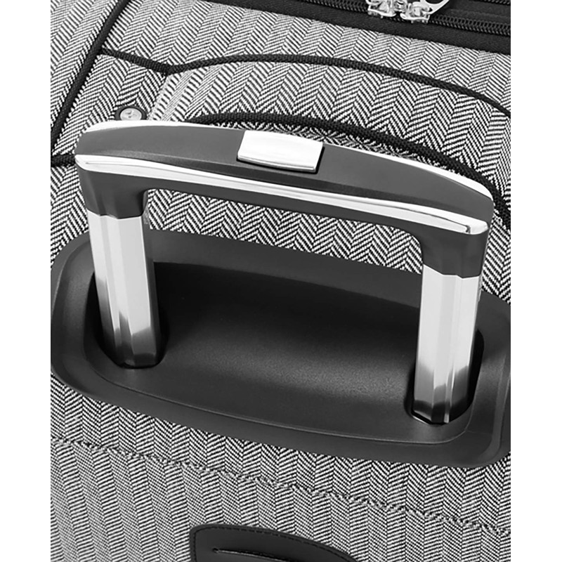 - Spinner uprights expand 2” for additional packing capacity. Convenient top, side and bottom carry handles.