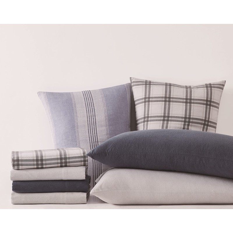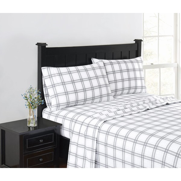 London Fog - Twin 3 Piece Sheet + Pillowcase Set - Solid Plaid Flannel Collection, 100% Cotton - Grey