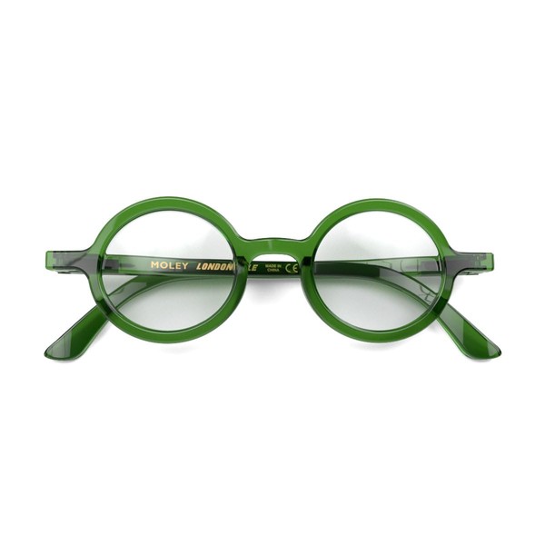 LONDON MOLE Eyewear | Moley Reading Glasses | Round Glasses | Cool Readers | Stylish Reading Glasses | Men's Women's Unisex | Spring Hinges | Transparent Green | + 1.0 magnification