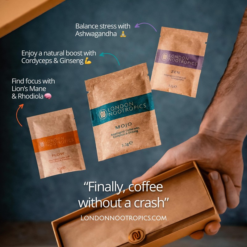 • LONDON NOOTROPICS: We're a UK company with a vision to make best-in-class adaptogen extracts accessible and easy to incorporate into our daily diet. We hope to help more people discover the benefits of adaptogens, stay balanced and find their flow