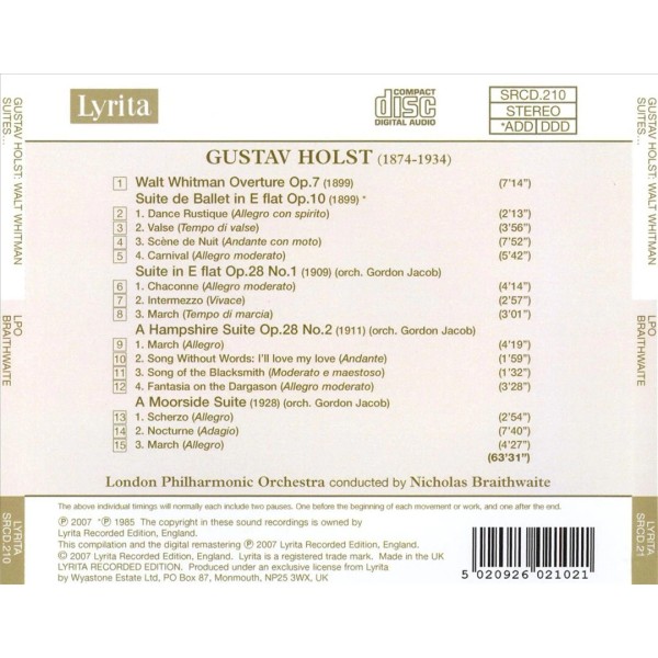 LONDON PHILHARMONIC ORCHESTRA HOLST: WALT WHITMAN OVERTURE; SUITE DE BALLET; SUI