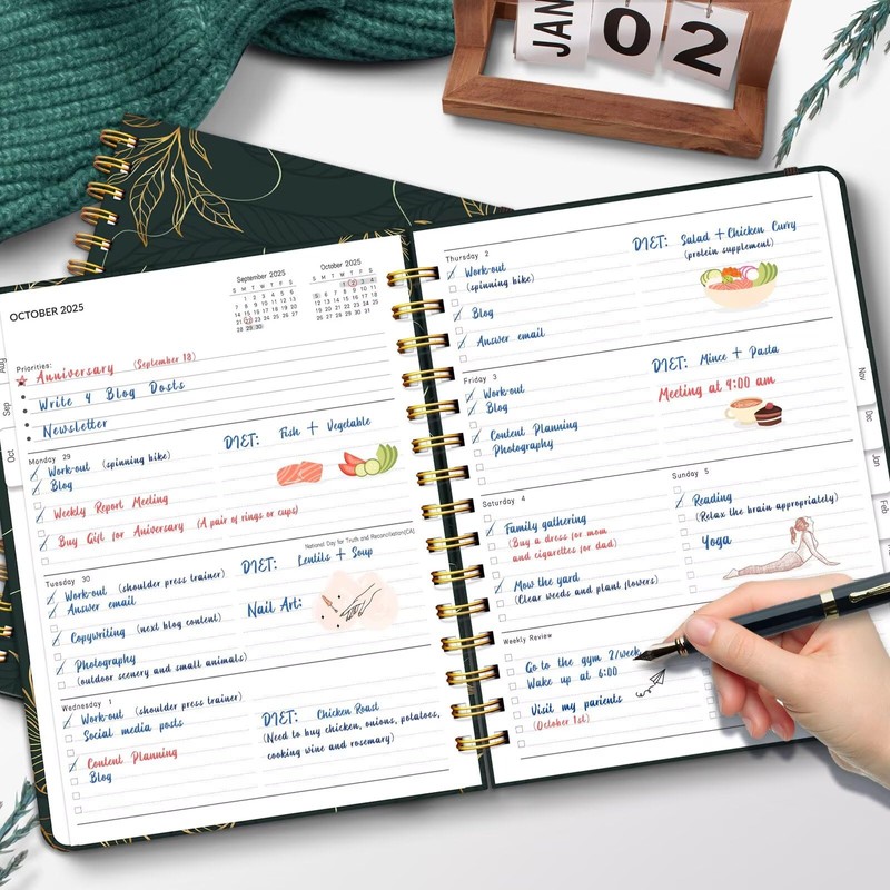 • [DELICATE DESIGN] This agenda organizers July 2025- June 2026 features unique rendered colors. Crafted from premium white paper, this academic planner minimizes ink bleed-through. Sturdy golden double-wire binding ensures smooth page turning and long-lasting durability.