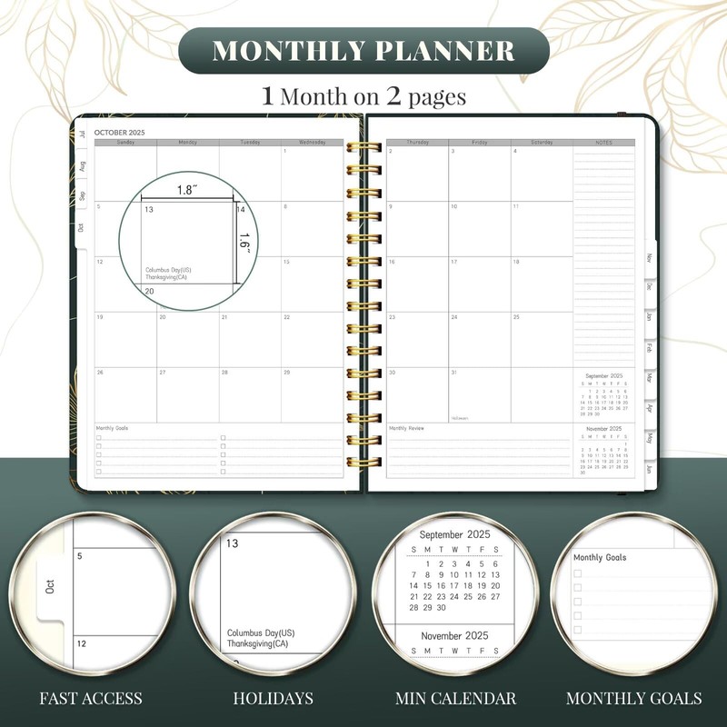 • [FUNCTIONAL DETAILS] 8.5" x 10.86" A5 Portable Size | 12 Monthly Tabs | Strong Twin-Wire Binding | Elastic Closure | Yearly Overview | Contacts Pages | My Vision & Mind Map | Overview of 12 Monthly Planners | Notes