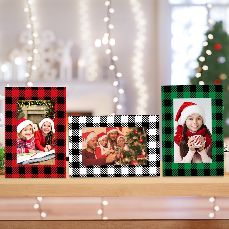 - Festive Christmas designs: Bring holiday cheer into every corner of your home with the DIY Christmas photo crafts frame, featuring 3 classic colors and charming plaid Christmas designs. You can also decorate the DIY red and green photo crafts frame with some stickers or doodles to make them unique Xmas decorations. They add a warm, festive touch that instantly brightens your holiday decor.