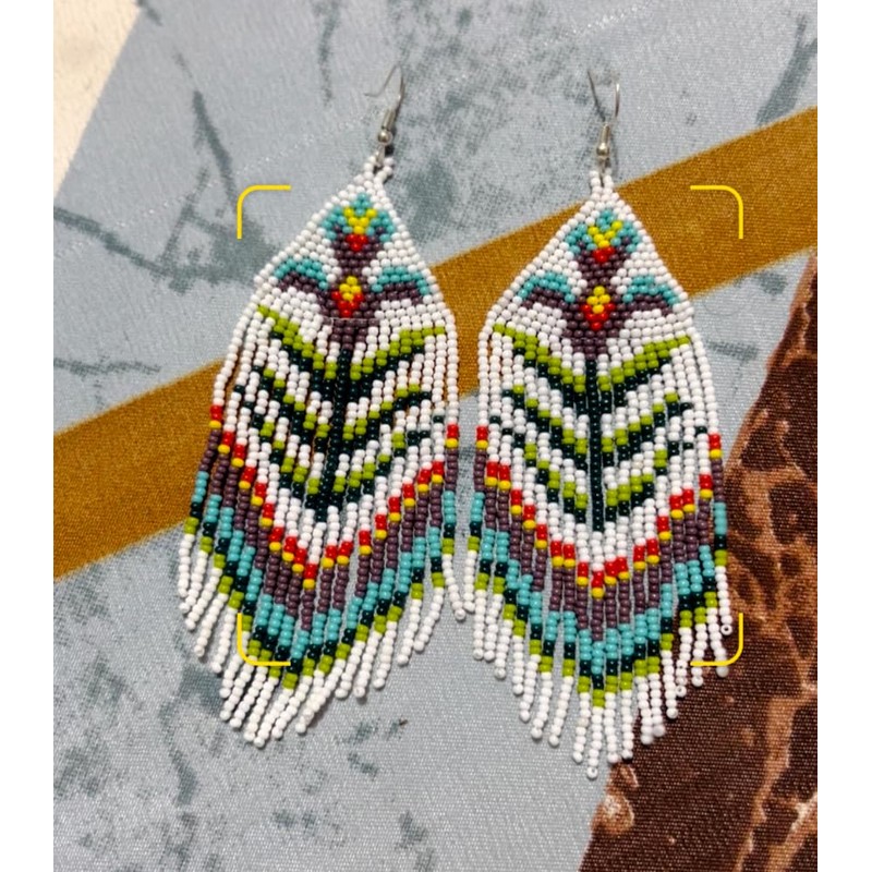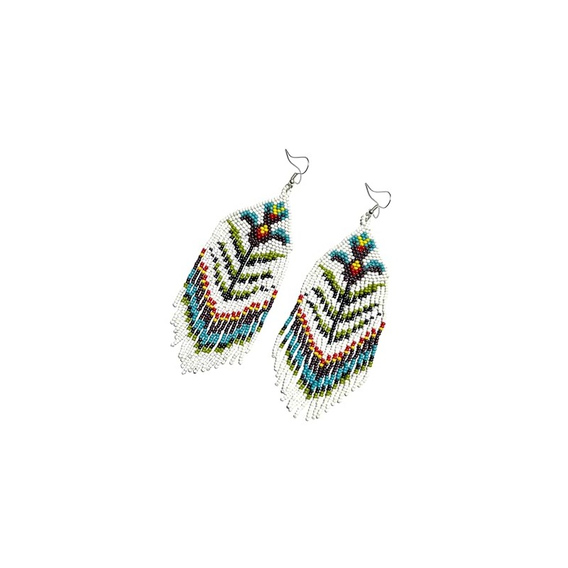 Long Beaded Dangle Earrings – Boho Native Handmade Seed Bead Tassel Bohemian Large Statement Drop Fringes for Women (Whait &)