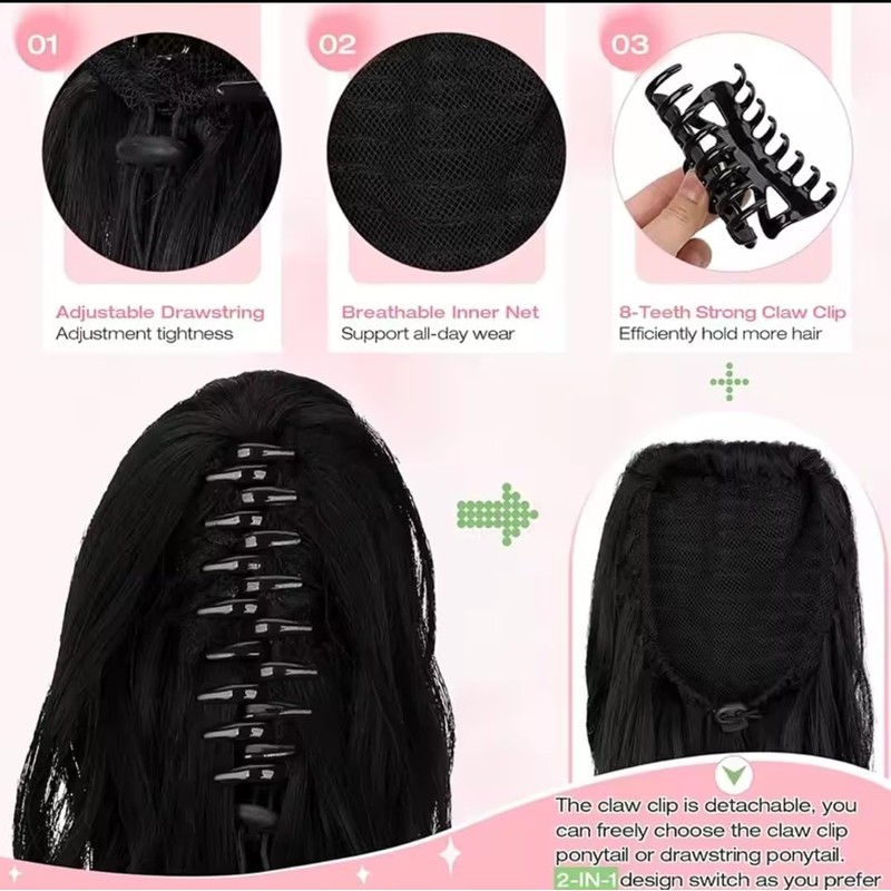 - VERSATILE STYLING: Can be worn as a ponytail, clip-in extension, or wrapped around existing hair for multiple styling options