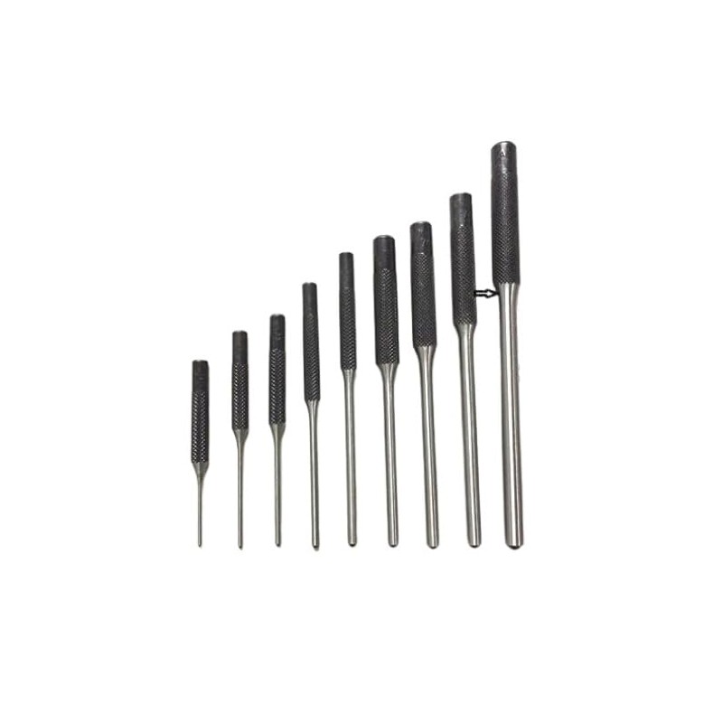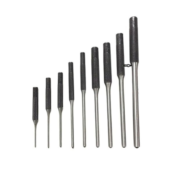 Long Drive Roll Pin Punch Set of 9 Pcs-Imperial Sizes/Hardened & Precisely Ground