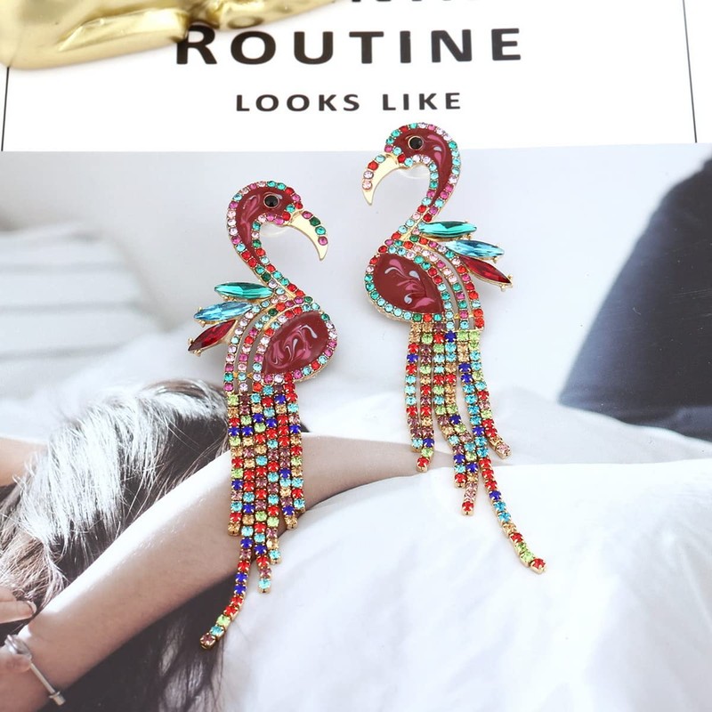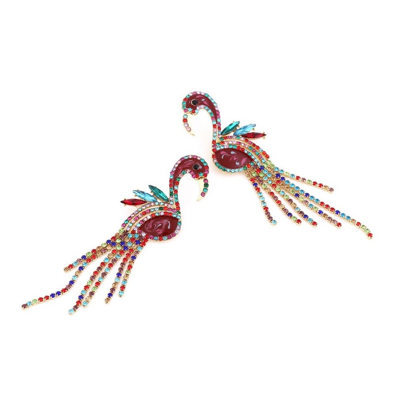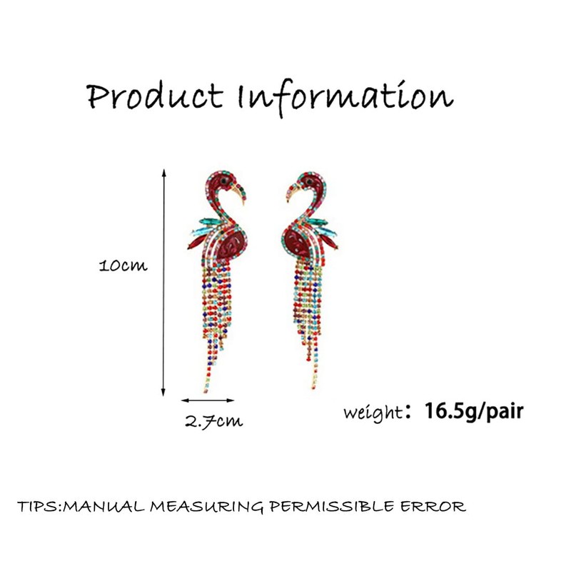 - **Long Flamingo Design**: These long burgundy flamingo dangle drop earrings feature a stunning bird motif adorned with crystal rhinestones. The unique and eye-catching design captures the essence of tropical elegance, perfect for adding a touch of exotic charm to your look.
