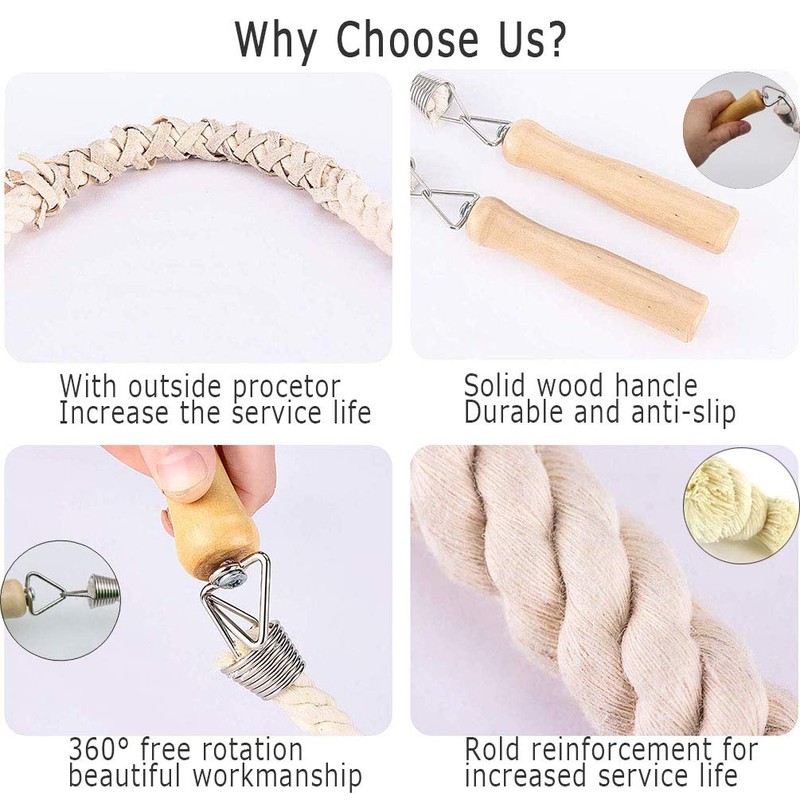 - The wooden grip is easy to fit in your hands, so it is easy to turn and won't hurt your hands. In addition, the rope has a moderate weight to reduce the burden of the turning person