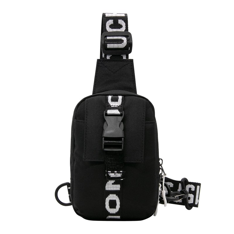 Long Keeper Lightweight Chest Bag Small Women's Men's Sling Bag Shoulder Backpacks Shoulder Bag Small Crossbody Bag for Cycling Travel Outdoor, Black (white letter shoulder strap)