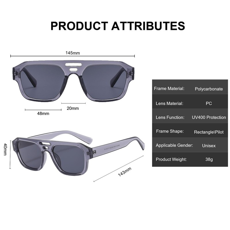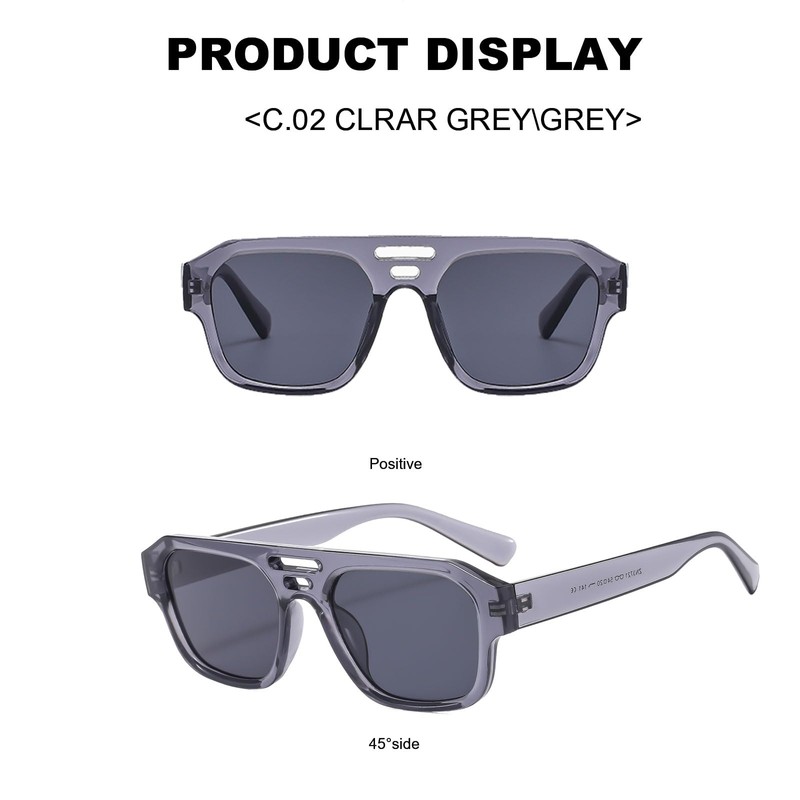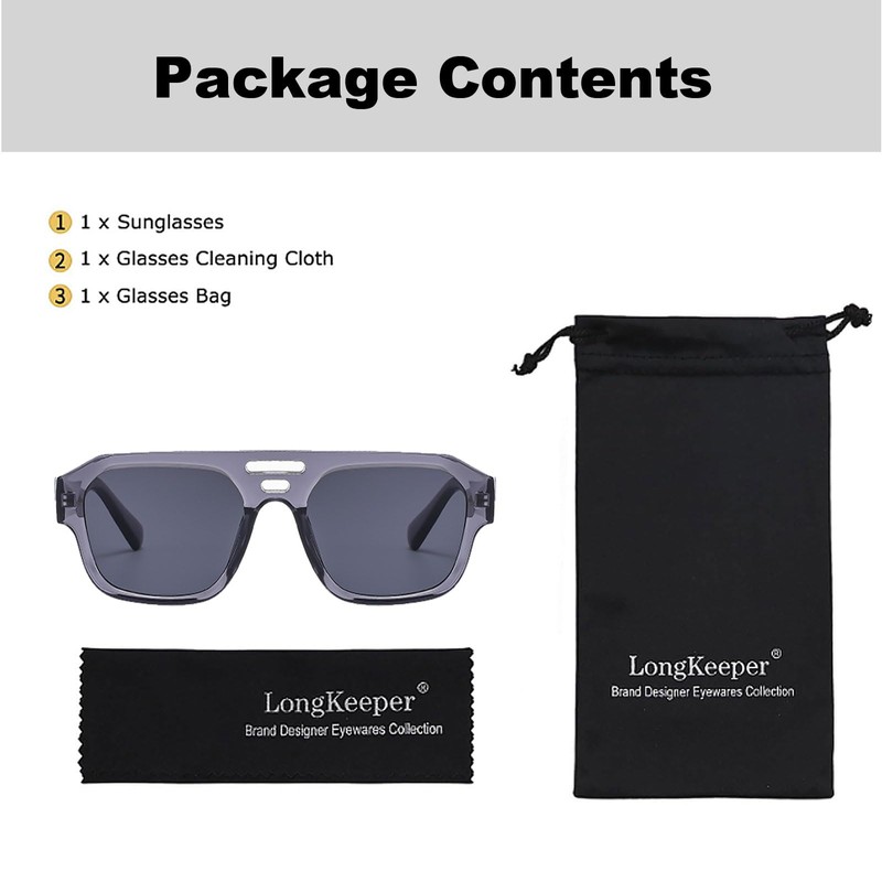 Long Keeper Retro Pilot Double Bridge Rectangle Pilot Sunglasses for Women Men Classic Square Eyewear Driving UV400 (Clear Grey Grey)