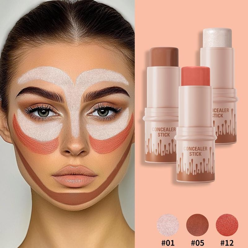 Long Lasting Concealer Stick, 3 Counts/set Highlighter & Blush & Contouring Stick, Facial Makeup Tool for Women & Girls, Christmas Gift - Color: #02+#08+#10, net weight: 6g*3 (Blush*1+highlight*1+contour*1)