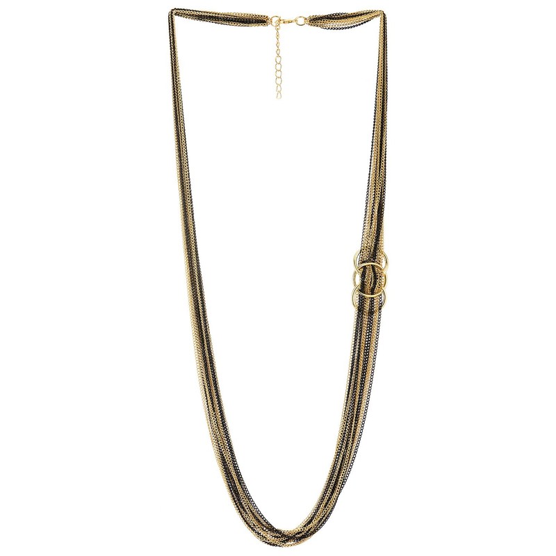 - Long Layered Necklace, Multi-Strand Gold Black Chains, Statement Necklace with Ring Charms