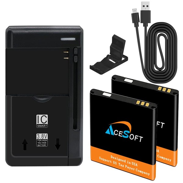Long Life Replaceable Li_ion Mighty Density 2X 1630mAh Battery Universal Travel Dock USB/AC Charger Micro USB Data Sync Cable Folding Bracket Compatible with Kazuna eTalk KAZ-F019PP Verizon