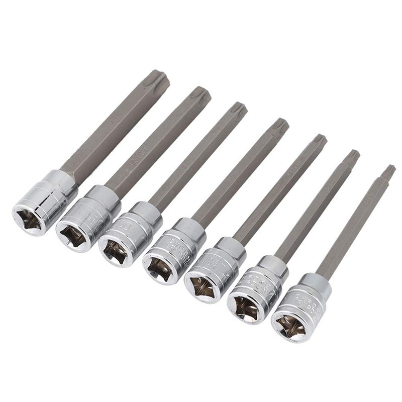 7 Pieces torx star bit sockets with 3/8inch drive.