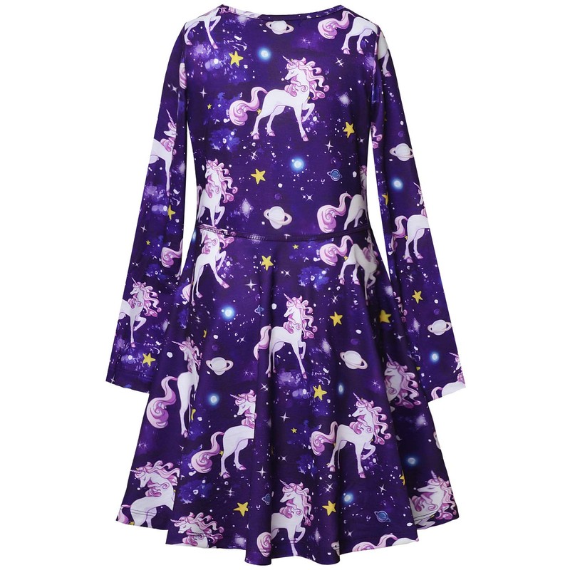 - Unicorn dresses for little girls, long sleeve dresses, crew neck, knee length