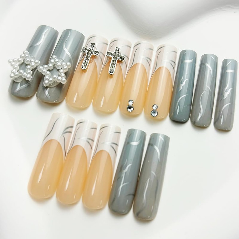 - Easy To Use:Long square glue on nails for women with 12 sizes to meet different size people's needs.Choose fit false nails and stickers, stick them, and press them on.Without waiting at the nail salon, easily stick on nail salon at home.The acrylic full cover nails for women are reusable.