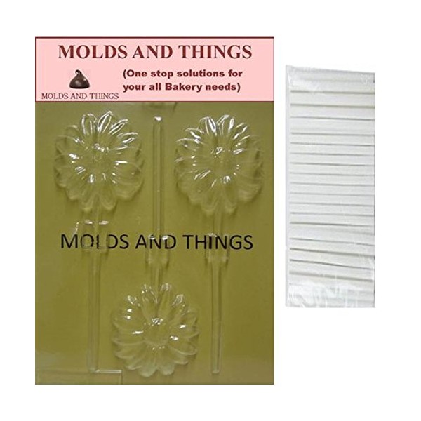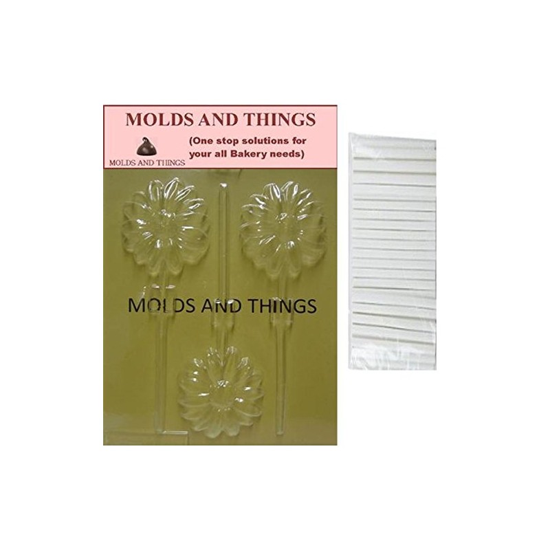 LONG STEM DAISY LOLLY chocolate candy mold with © Molding Instruction+ 25 lollipop sticks