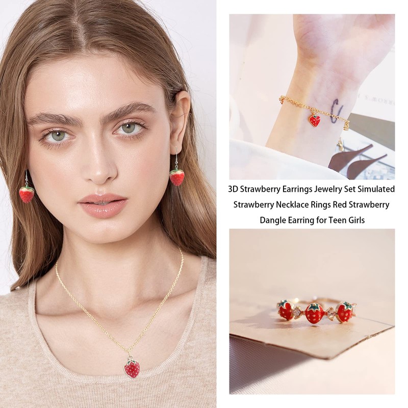 - Strawberry Necklace Jewelry: You will receive a pair of strawberry dangle earrings, a strawberry dangle necklace and a strawberry ring.