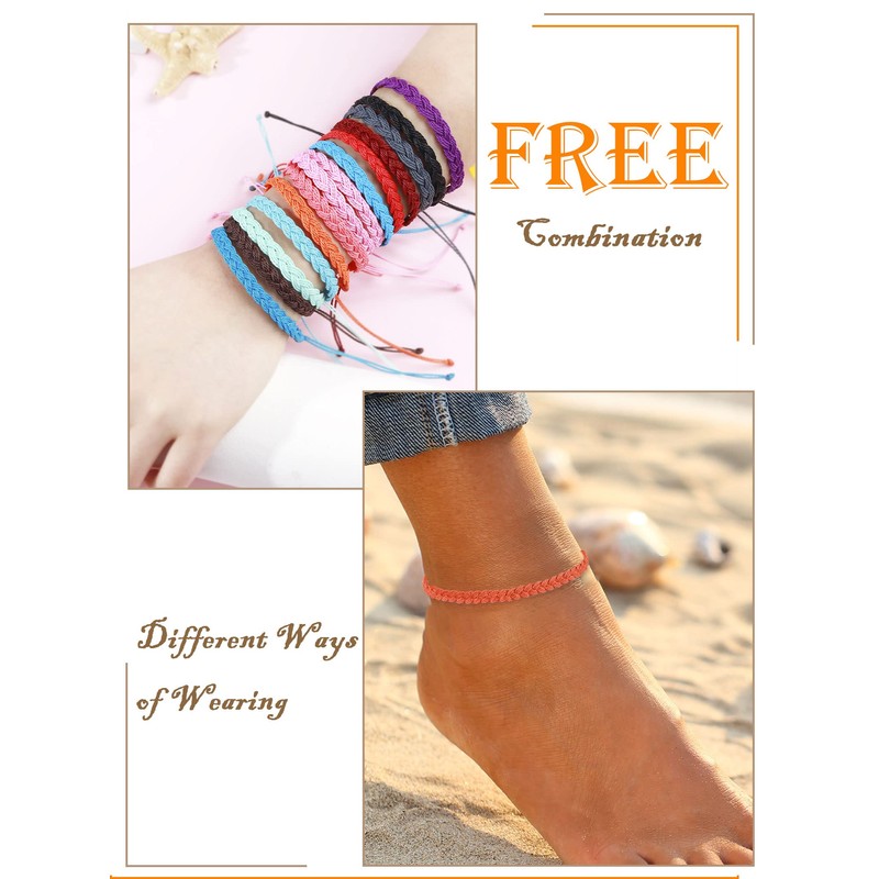 - ADJUSTABLE SURFER BRACELET FOR BEACH: Each beach surfer string bracelet is 6.7 to 12.6 inches in length, it can be adjusted by to fit the size of your wrist and ankle, proper size for most women. The colorful string bracelets is very light and you may not feel the weight.