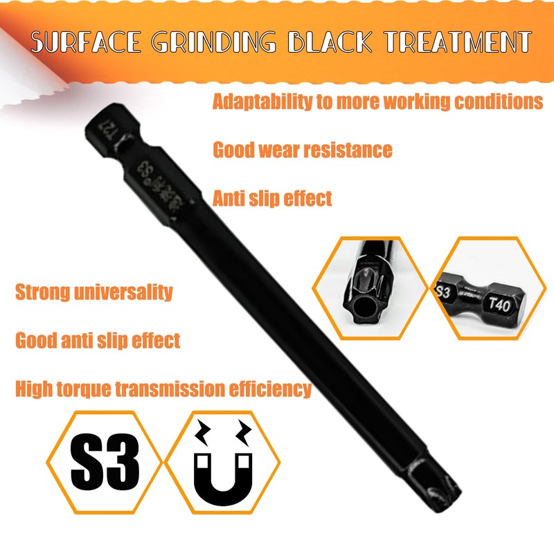 High-quality materials: These torx bits are made of high quality S3 steel with high hardness and wear resistance, comes with strong magnetic, anti-rust and anti-corrosion,durable for a long time service.