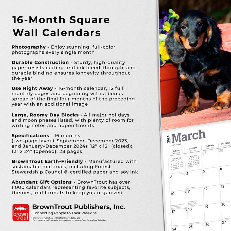 Longhaired Dachshunds | 2024 12 x 24 Inch Monthly Square Wall Calendar | BrownTrout | Animals Small Dog Breeds