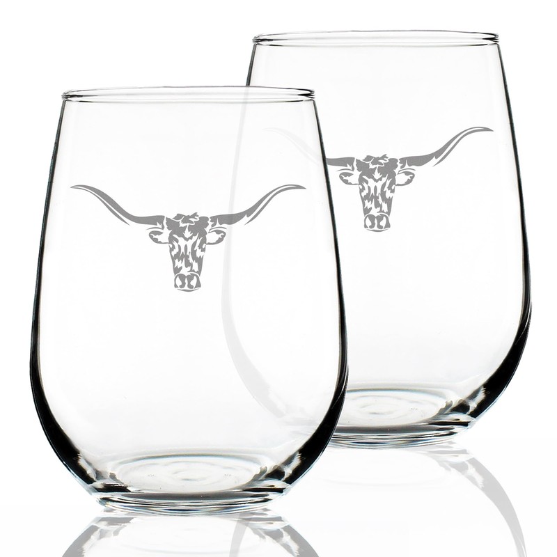 - Set of 2 Longhorn Wine Glasses - Longhorn gifts for Texas ranchers and farmers that love their wine almost as much as they love their longhorns.