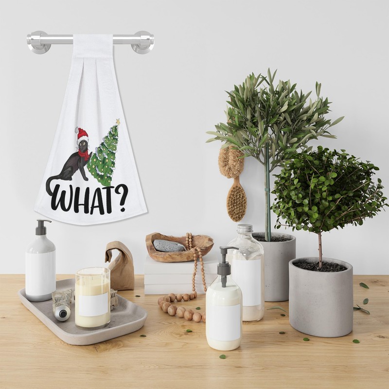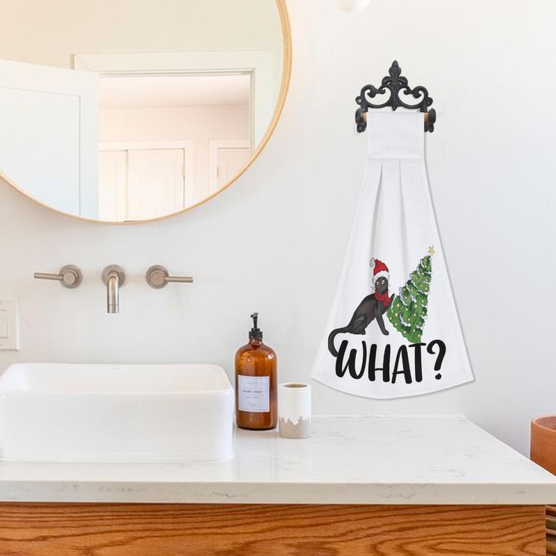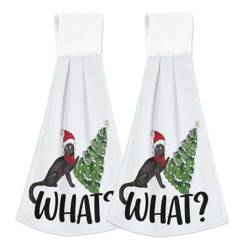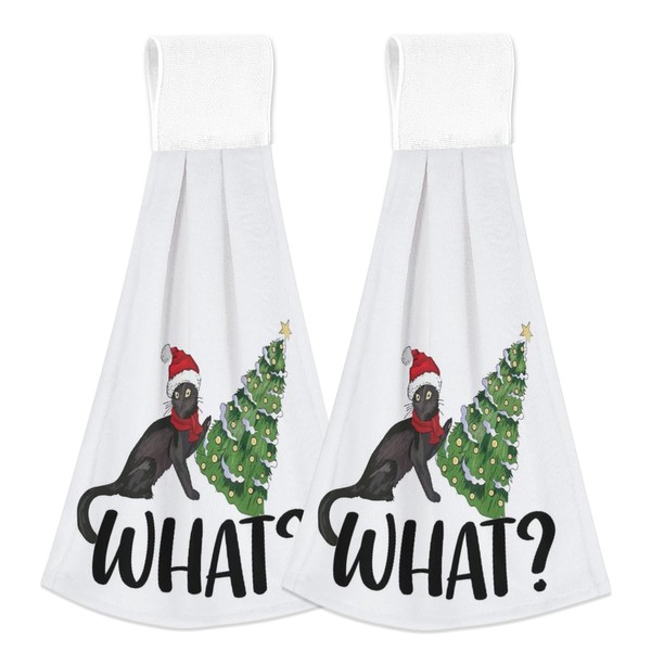 longlugoo Christmas Cat with Tree Hanging Kitchen Dish Towel 2 Pack Hand Towels Soft Coral Velvet Decorative Hand Towels with Loop for Bathroom Tie Towel Absorbent Dish Towels