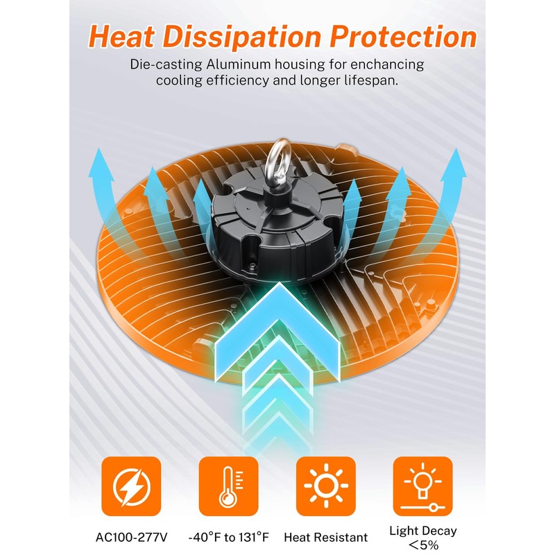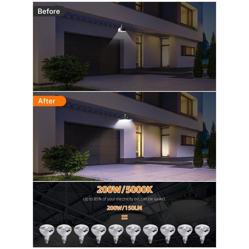 LONGLUX 200W UFO LED High Bay Light High Brightness 150lm/w 100-277V 5000K US Plug and Play LED High Bay Shop Lights for Garage, Warehouse,Workshop,Factory,ect. 1Pack