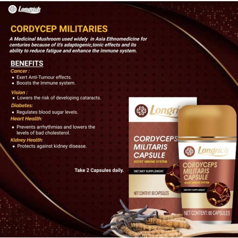 Longrich Cordyceps Militaris Capsule-Boosts Immune System(60 capsules) USA Brand.
