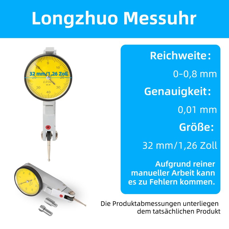 Longzhuo Dial Gauge 0-0.8mm Magnetic Dovetail Rails Dial Gauge Test Indicator 0.01mm Measuring Scale Measuring Tool (Includes Accessories)