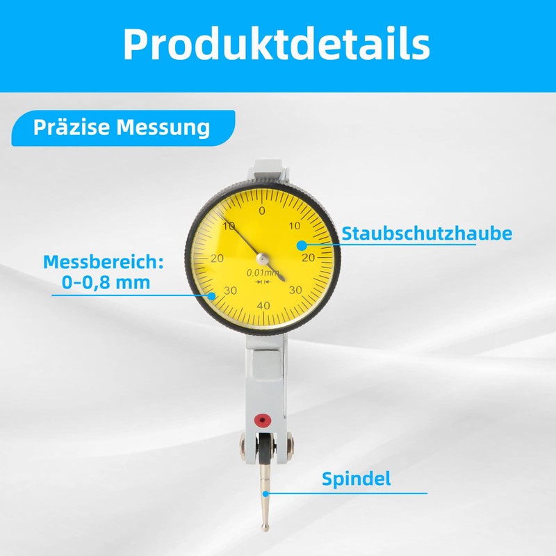 - Measuring range: the measuring range of the mechanical dial gauge is 0-0.8 mm and the fully closed dial prevents liquid from entering, making it suitable for workshop use