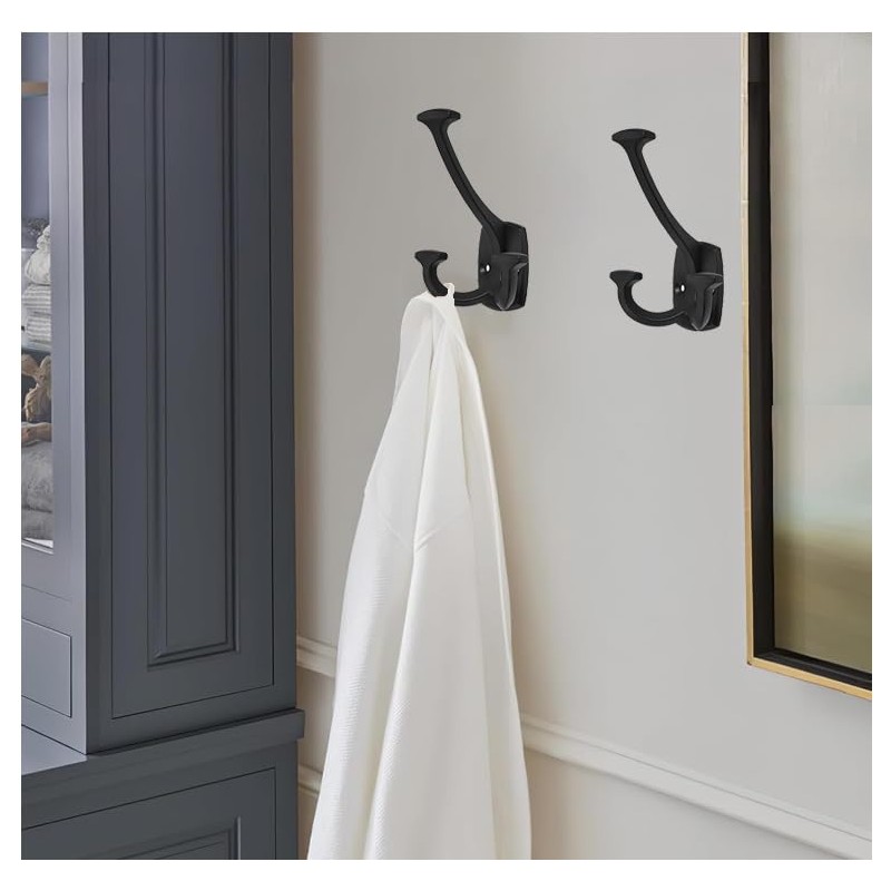 LONHECAN Matte Black Hooks Large Wall Mounted Decorative Solid Heavy-Duty Double-Sided Coat Hooks for Hanging Towels Coats Robes Towels Bag Bathroom Wall Hooks (5 Pack)