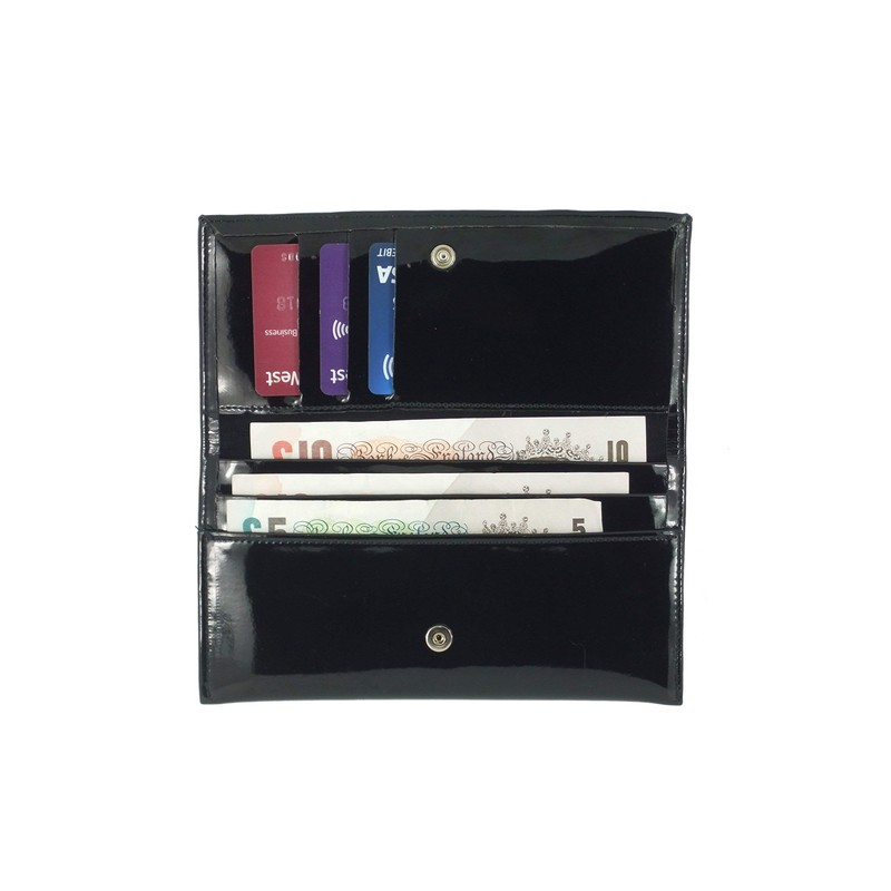- Front inside - 3 card slots, 3 note compartments