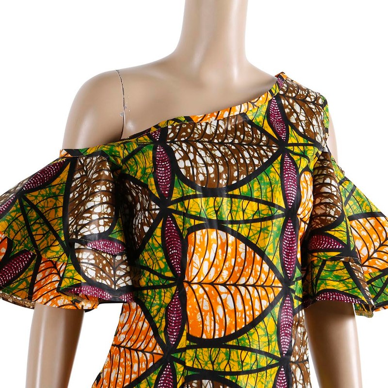 - 【Characteristic】:African fashion printed dress; Single shoulder ruffled sleeves, high waist knee length dress, elegant slim fitting dress; Suitable for any body type, please try boldly