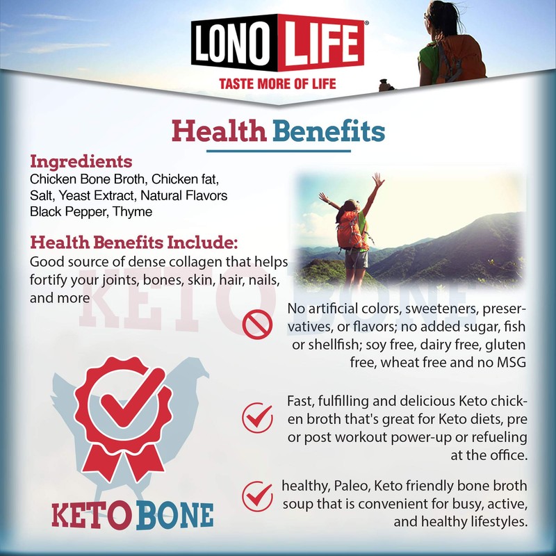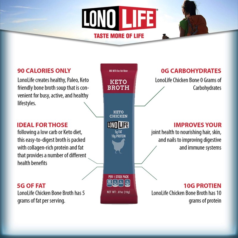 - Fast, fulfilling, and delicious Keto chicken bone broth that's great for Keto diets, intermittent fasting, pre- or post-workout power-up, refueling at the office, or snacking while backpacking