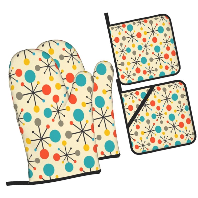 LONSANT Mid Century Fifties Modern Atomic Retro Colors Oven Mitts and Pot Holders Sets of 4 High Heat Resistant Oven Mitts with Oven Gloves and Hot Pads Polyester Potholders for Kitchen Cooking Mitts