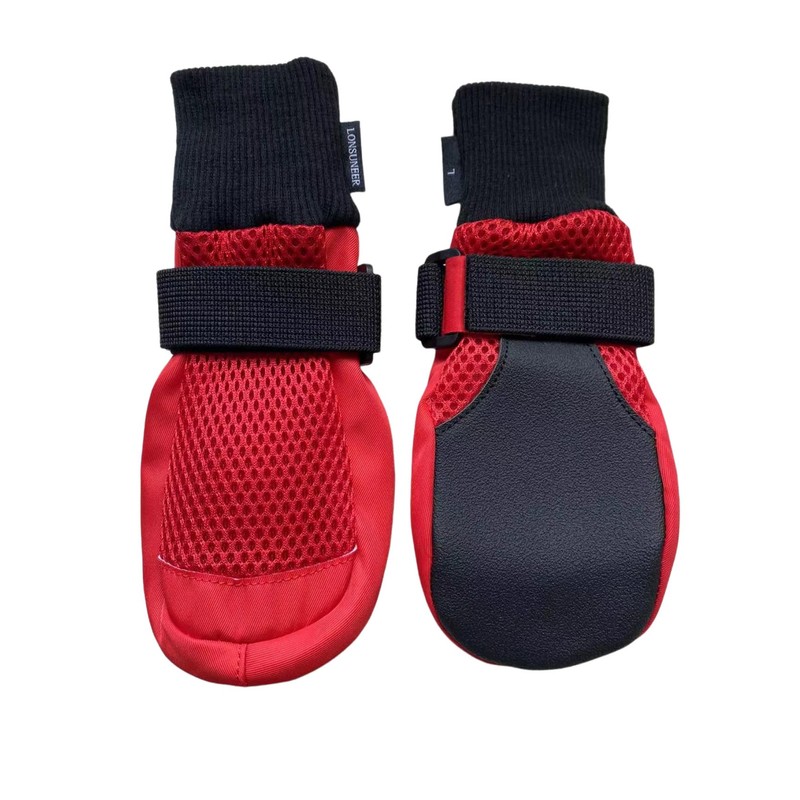 LONSUNEER Dog Boots Breathable Protect Paws Soft Nonslip Soles in 5 Sizes (Large, Red)