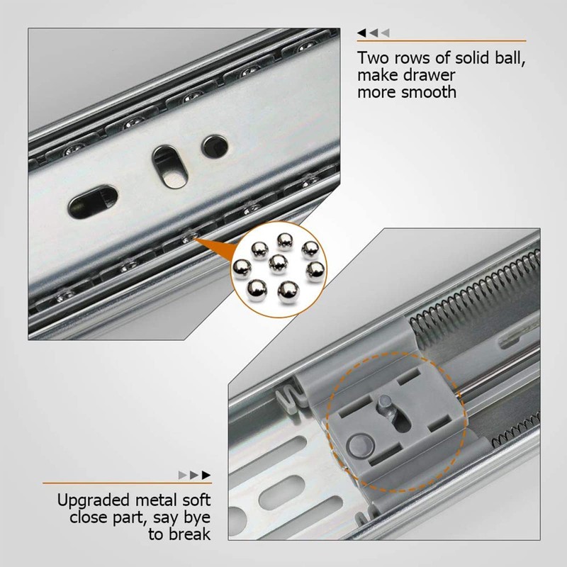 - ※ Soft Close: The drawer slides equipped hydraulic damper which allows the slides achieve soft close effect. Double spring design make less noise when close and open, create a warm and quiet family environment for you.