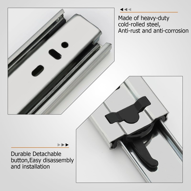 - Easy To Install:Our drawer slides are fitted with detachable snaps for easy installation or removal of the drawer slides. You only need to gently press the buckle, which is convenient and agile