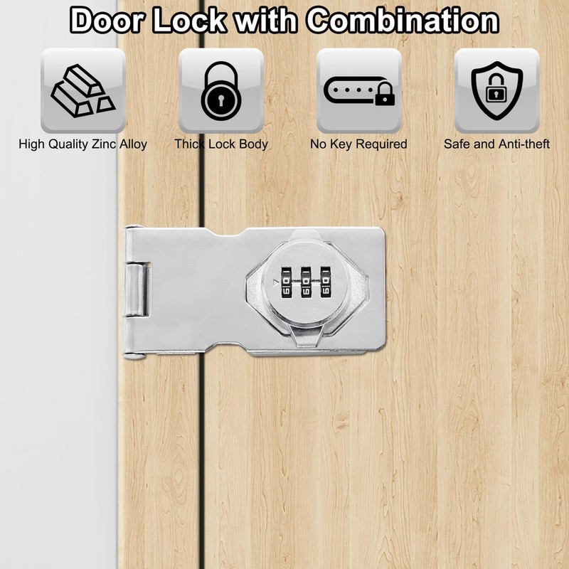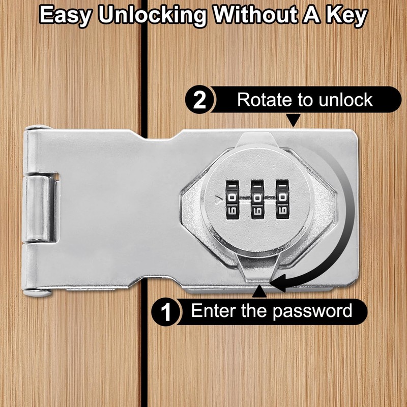 LONTOM Cabinet Lock, Metal Password Hasp Lock, Security Rotate Cupboard Lock Drawer Lock, Hasp Latch Lock with Screws for Cabinets, Drawers, Cupboard, Shed, Garden