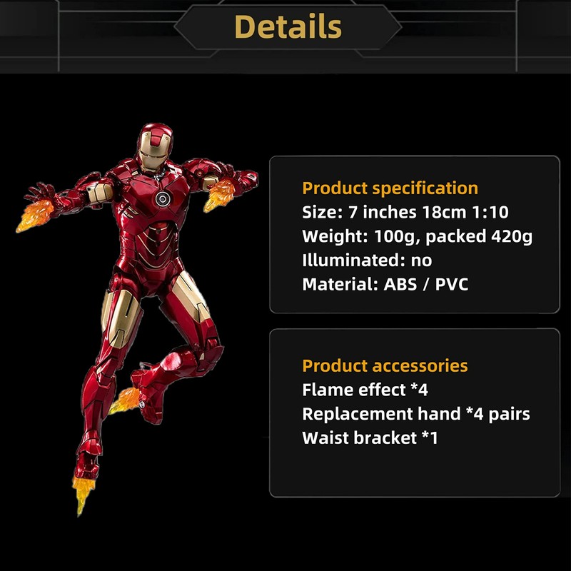 - 💟【WONDERFUL】This 7 inch action figure comes with a beautiful gift box, a 7 inch MK4 action model, 4 pairs of replaceable hands, 4 flame effects and a multi joint transparent support.