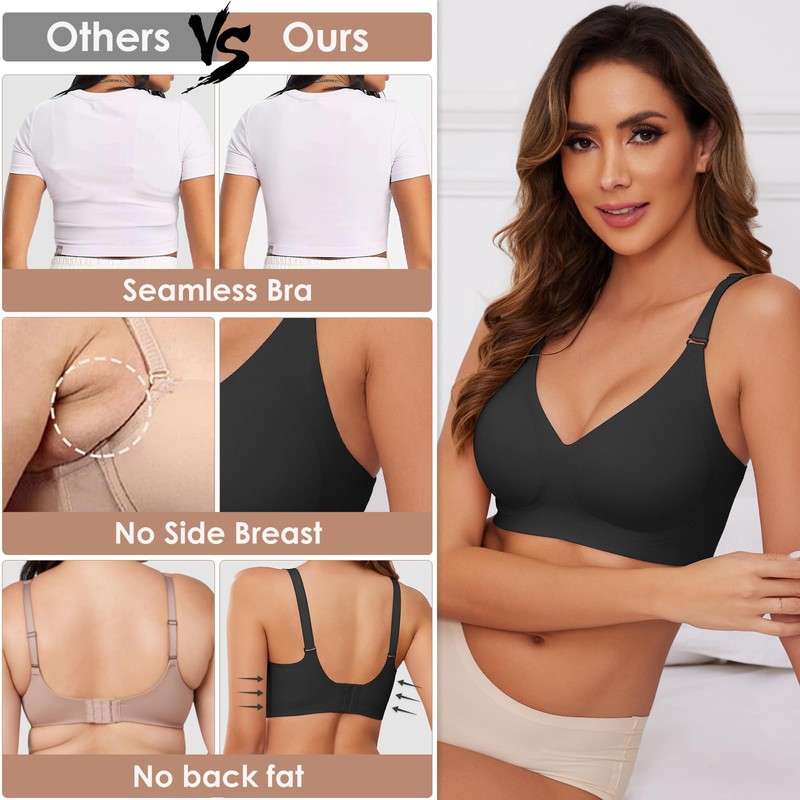 - V Neck Full Coverage Bra:Our padded bras have semi-fixed pads that retain their shape even after repeated washing and stay in place when rolled up. The deep V-neckline accentuates women's elegant curves, gathers and shapes the breasts into perfect curves, and is suitable for all cup size. We will give an extra bra extension clasp, so that the user can better fit their breasts and provide a fuller and more comfortable wearing experience.