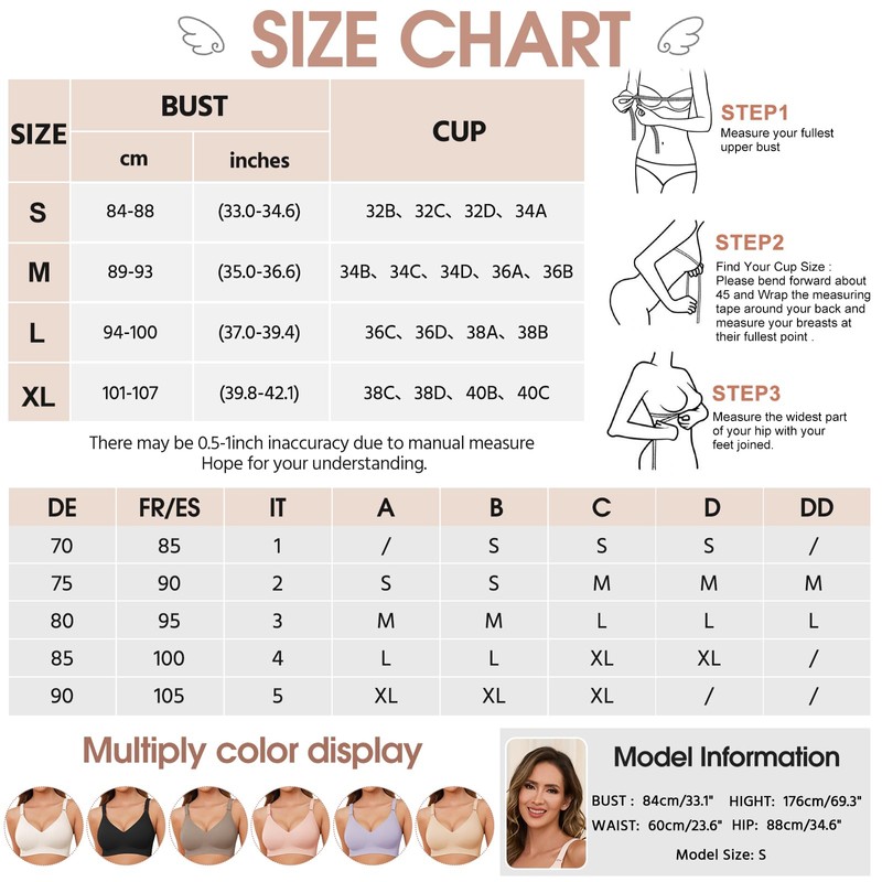 - Non Wired Bra:In order to maintain a healthy and comfortable experience for the wearer, the bra has a non wired desig that reduces pressure on the breasts; this push up bra does not put any pressure on the breasts. Instead, it subtly follows the natural curve of the breasts and gives support in a more gentle way, thus keeping them plump and round. Adjustable straps are designed to meet the needs of different body shapes, ensuring a snug fit without slipping, and a more stable fit.