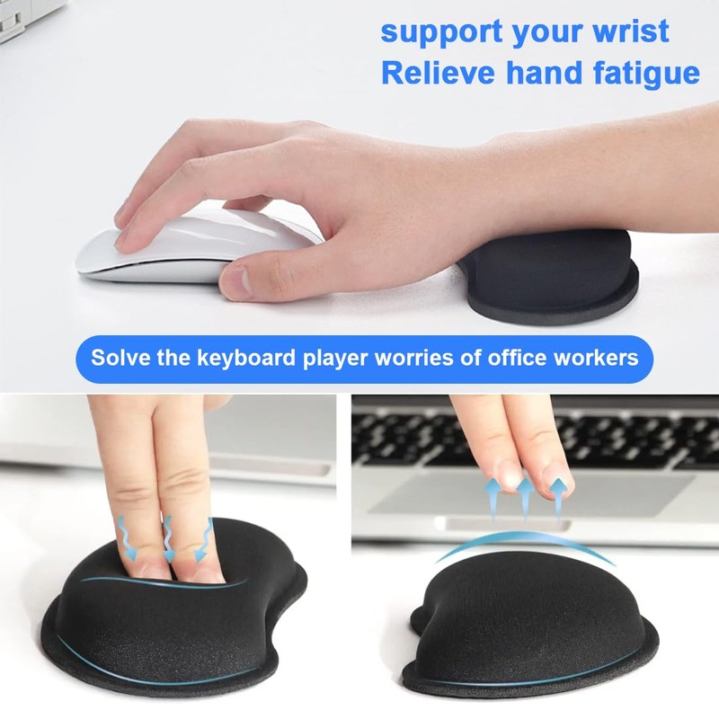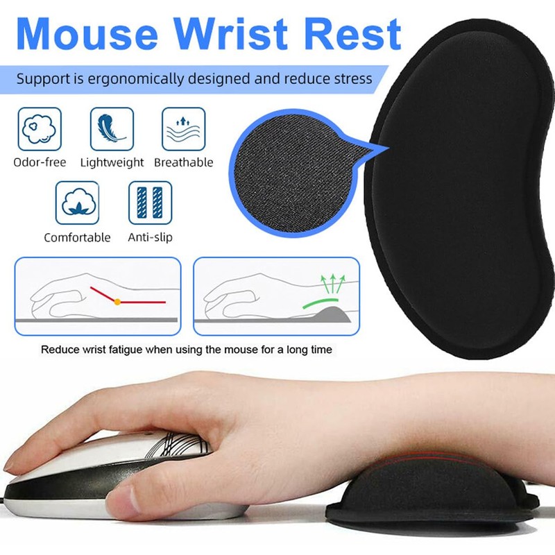 Ergonomic wrist pad: the wrist rest mouse has an ergonomic wrist shaped design that adapts perfectly to your wrist. This keeps your wrist in a neutral position and avoids friction, which contributes to effective relief during long-term use.