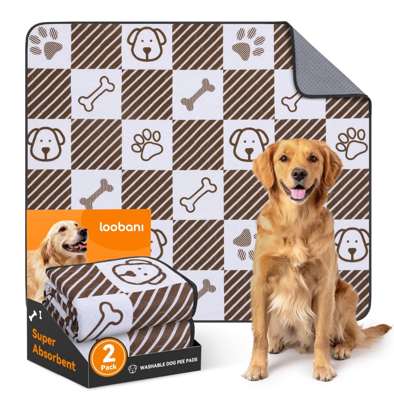 LOOBANI Washable Pee Pads for Dogs: 2 Pack 36"x41" Washable Puppy Pads, Reusable Pee Pads Waterproof Leakproof and Non-Slip Whelping Pads & Potty Training Pad for Floor, Dog Playpen,CrateCoffee