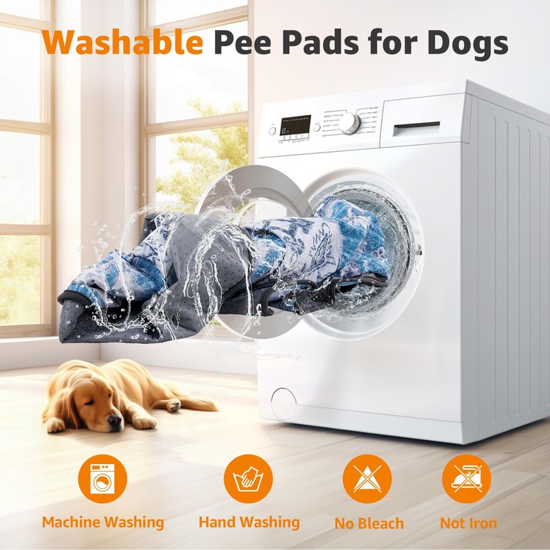- WASHABLE & REUSABLE PEE PADS: You can machine wash or hand wash these reusable pee pads for dogs, high quality will not tear and shrink after washed. The waterproof TUP coating makes our dog potty pad stand up to repeated cleanings or urine soaking