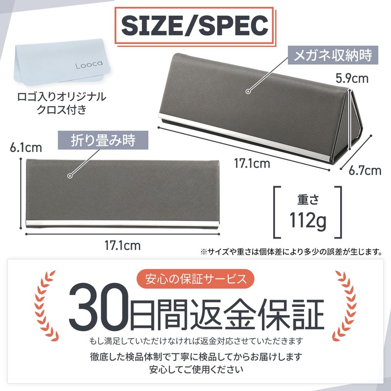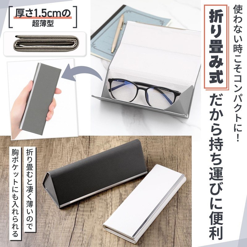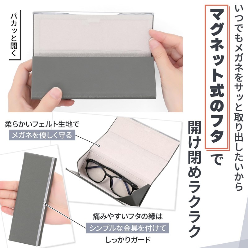 Looca Glasses Case, Foldable Thin Design, Eyeglass Case, Slim, Thin, Foldable, Fashionable, Semi-Hard, Glasses Wipe, Women's, Men's, gray